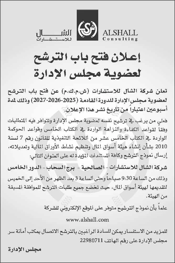 نموذج الكفاءة والنزاهة للترشح لعضوية مجلس ادارة شركة الشال للاستشارا